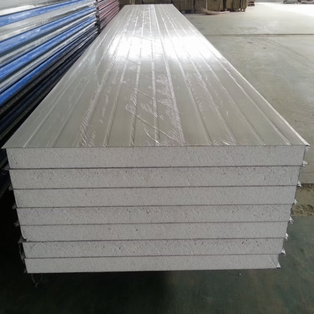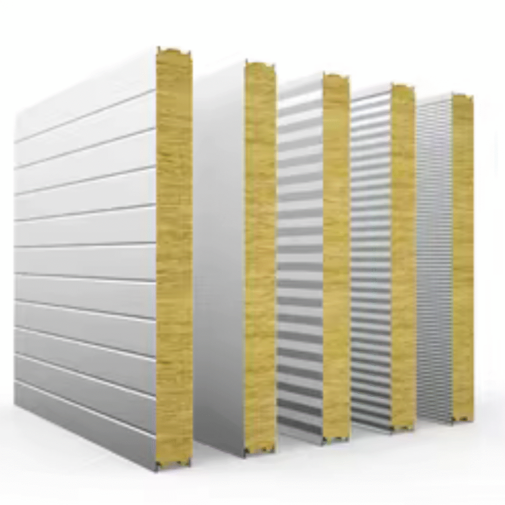 These are insulated cladding systems composed of two metal sheets with a core material (usually PU or EPS) in between. Used for industrial and cold storage buildings due to their excellent thermal insulation. Benefits: Thermal efficiency, fast installation, noise reduction, and strength.