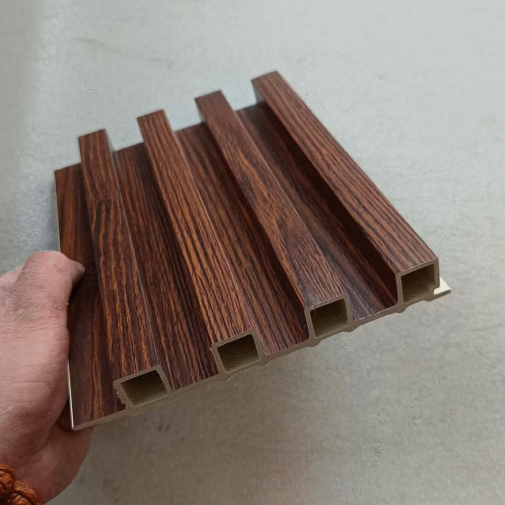 WPC (Wood Plastic Composite) panels are an eco-friendly, decorative cladding option that replicates wood aesthetics without its vulnerabilities. Perfect for feature walls and exterior accents. Benefits: Rot-proof, termite-resistant, stylish, and eco-conscious.