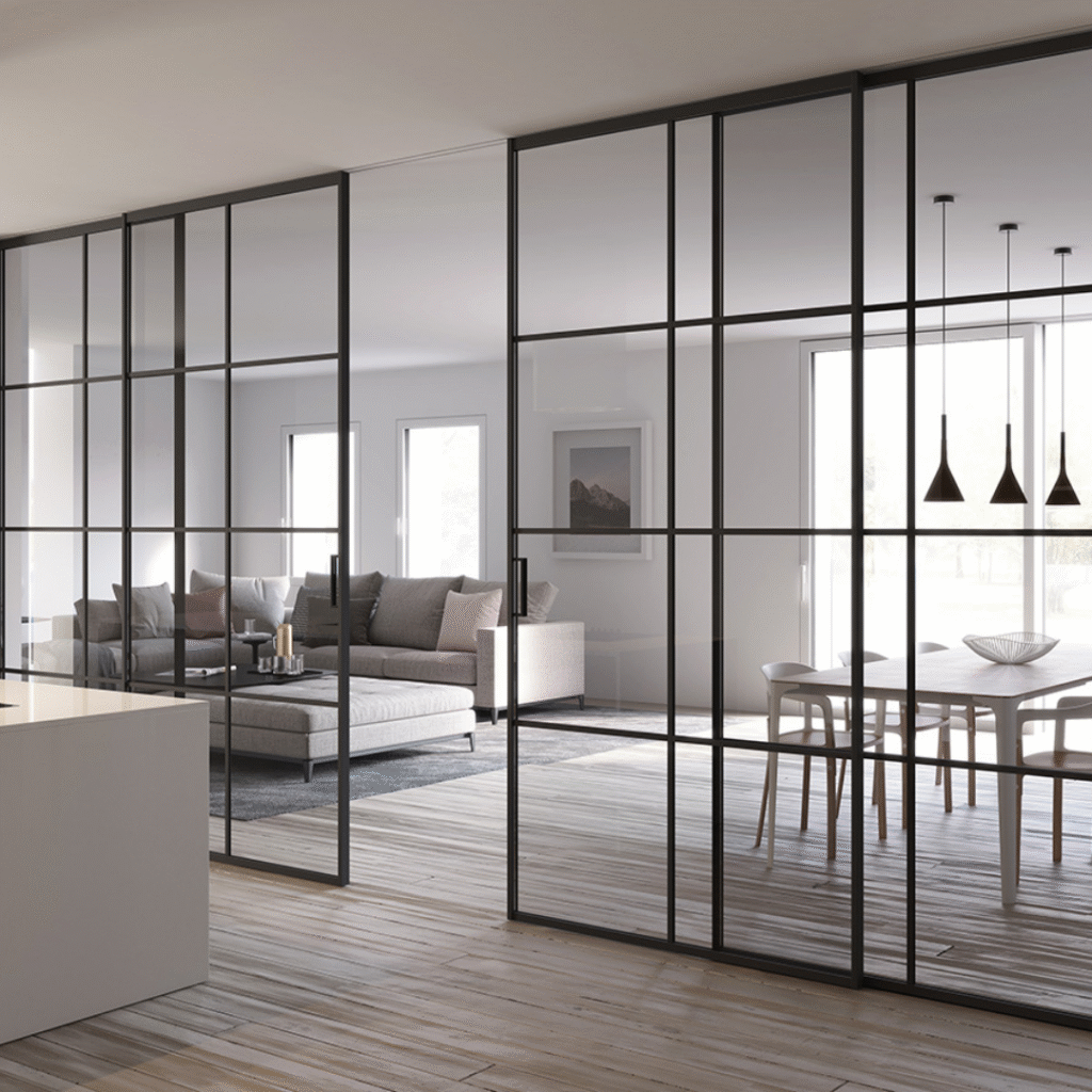 Ideal for creating open, light-filled interiors in offices, retail spaces, and homes. These systems use toughened safety glass and minimalist hardware for seamless space division without blocking visibility. Benefits: Space efficiency, noise isolation, modern aesthetic, easy maintenance.