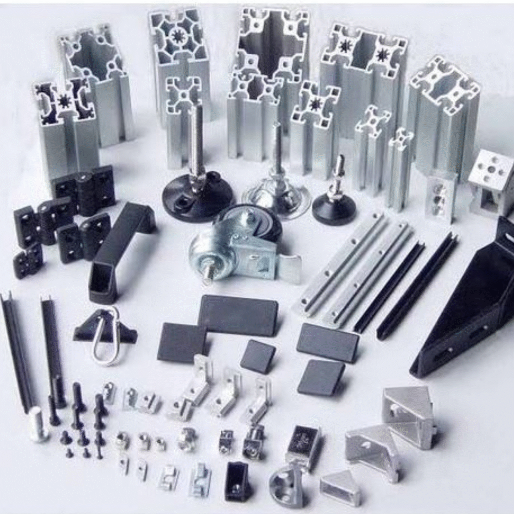 We stock and sell a wide variety of aluminum accessories required for installations and fabrications. This includes hinges, locks, rollers, handles, corner joints, and end caps. Use Cases: Windows, doors, curtain walls, frames, handrails. Features: Corrosion-resistant, durable, sourced from trusted manufacturers.